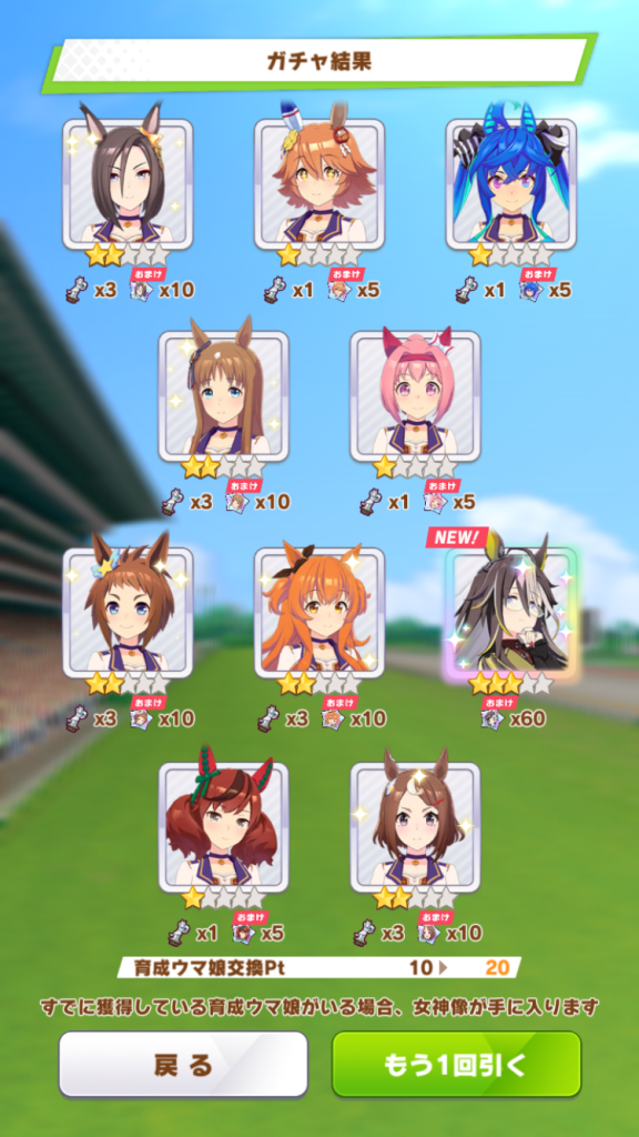 ウマ娘昨夜石も貯まったので10連を回してみると来たー!