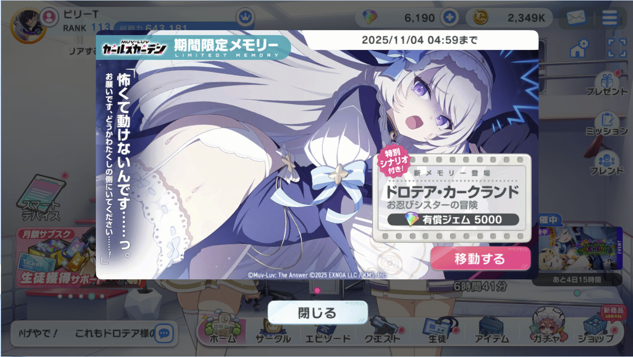スポンサーリンク マブガル:「HALLOWEEN CARNIVAL」10日目! Muv-Luv Girls GardenMGGタイトル20250903 X Facebook はてブ LINE コピー 2025.10.23 学園日誌 メモリーの販売だ! 買えないぞ! MGGSS20251023-1 それはそれとして、イベントストーリーの方は進めた。 MGGSS20251023-2 デイリーも消化。 MGGSS20251023-3 この後も進めます。 本日は以上! 共有: クリックして X で共有 (新しいウィンドウで開きます) X Facebook で共有するにはクリックしてください (新しいウィンドウで開きます) Facebook