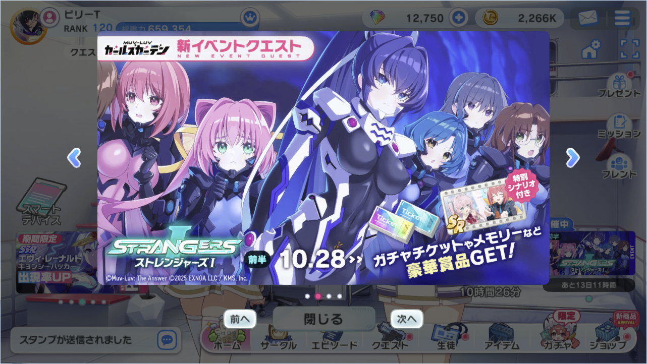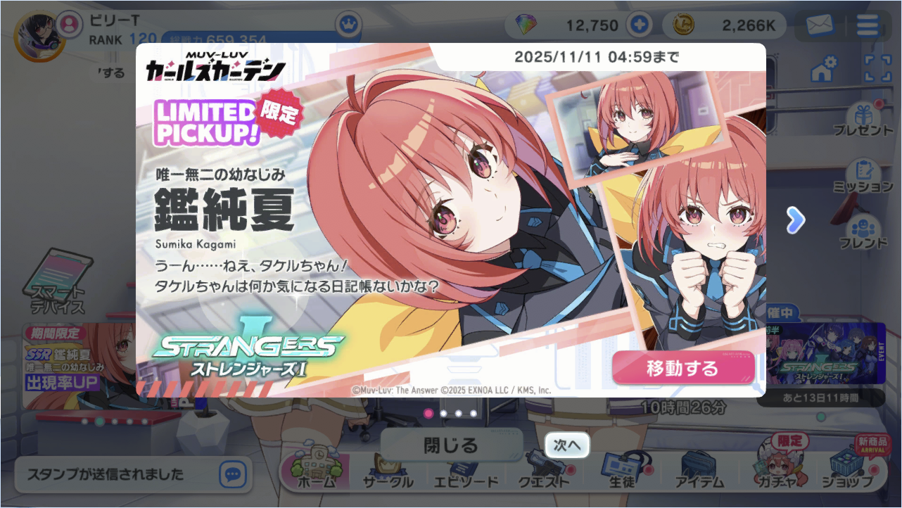 スポンサーリンク マブガル:「STRANGERS I」初日! Muv-Luv Girls GardenMGGタイトル20250903 X Facebook はてブ LINE コピー 2025.10.28 学園日誌 と言う訳でメンテ明けて、オルタコラボだ! MGGSS20251028-2 MGGSS20251028-3 と言う訳で、シナリオを早速読む。 原作BGMとかきっちり使ってて好感度が上がる。 MGGSS20251028-4 デイリーは終わらせた。 MGGSS20251028-5 いやあ、良い出来で満足。 変な物は出してこない謎の信頼はあったが、予想以上だ! 明日のシナリオ更新が楽しみ。 本日は以上! 共有: クリックして X で共有 (新しいウィンドウで開きます) X Facebook で共有するにはクリックしてください (新しいウィンドウで開きます) Facebook