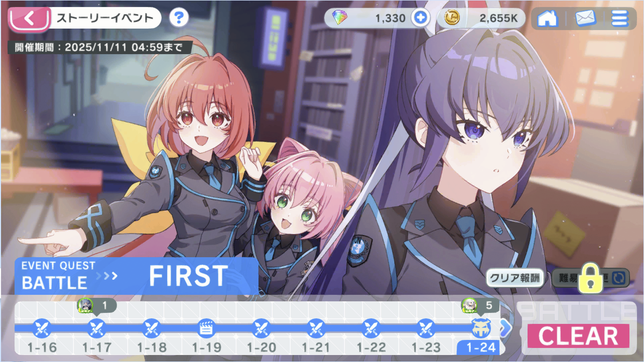 スポンサーリンク マブガル:「STRANGERS I」2日目! Muv-Luv Girls GardenMGGタイトル20250903 X Facebook はてブ LINE コピー 2025.10.29 学園日誌 今日の5時に更新されたシナリオを読む。 MGGSS20251029 石油王がランキング1位にしてくれるのを期待して……。 今日も首位奪還してたし。 時限式にコンテンツ解放されるので、解放された端から進めていきます。 本日は以上! 共有: クリックして X で共有 (新しいウィンドウで開きます) X Facebook で共有するにはクリックしてください (新しいウィンドウで開きます) Facebook