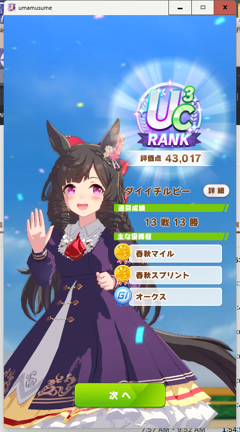 ウマ娘今日、さっき育成しました。