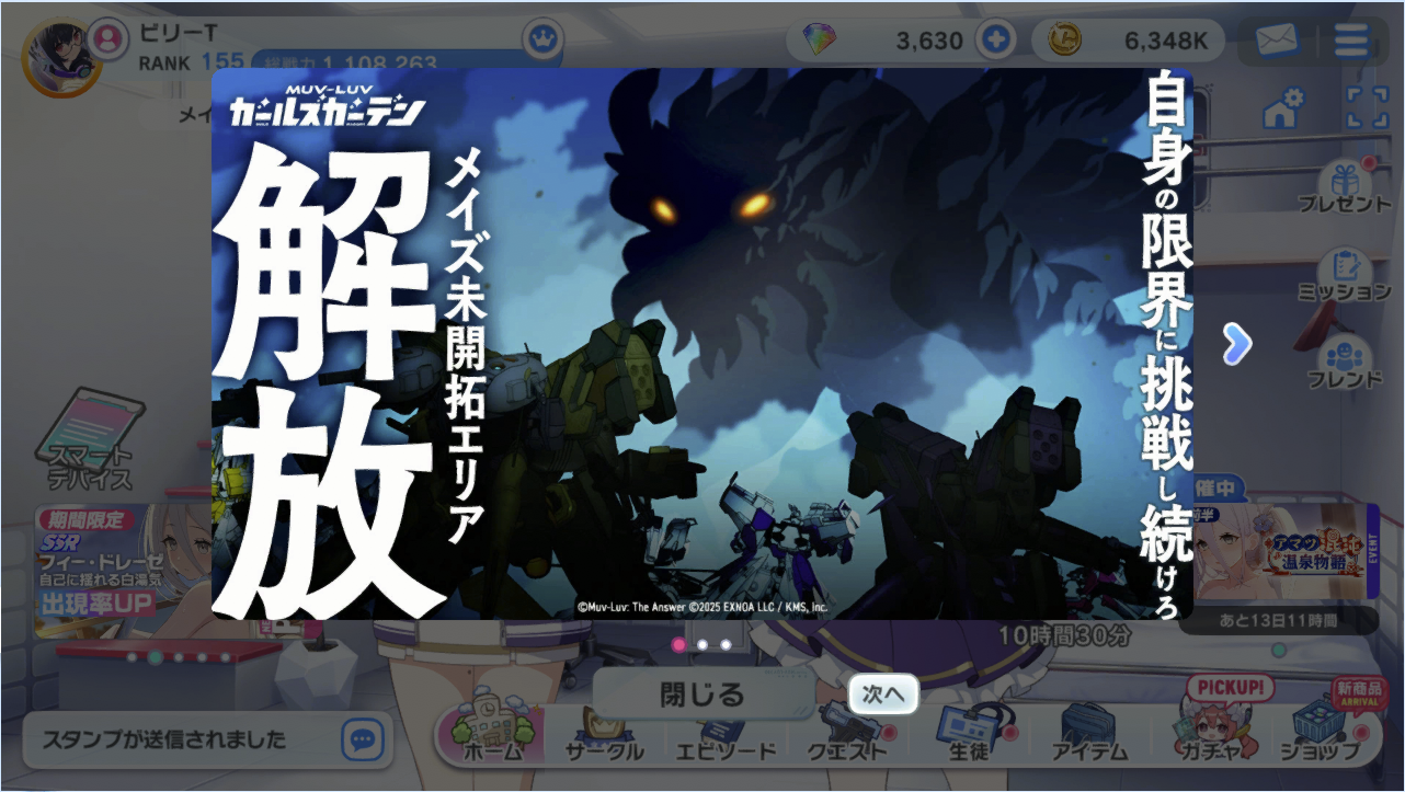 スポンサーリンク マブガル:「アマツ混沌温泉物語」初日! Muv-Luv Girls GardenMGGタイトル20250903 X Facebook はてブ LINE コピー 2025.11.25 学園日誌 17時までメンテでした。 MGGSS20251125-1 色々実装。 MGGSS20251125-2 MGGSS20251125-3 MGGSS20251125-4 イベント走るぞー! 本日は以上! 共有: クリックして X で共有 (新しいウィンドウで開きます) X Facebook で共有するにはクリックしてください (新しいウィンドウで開きます) Facebook