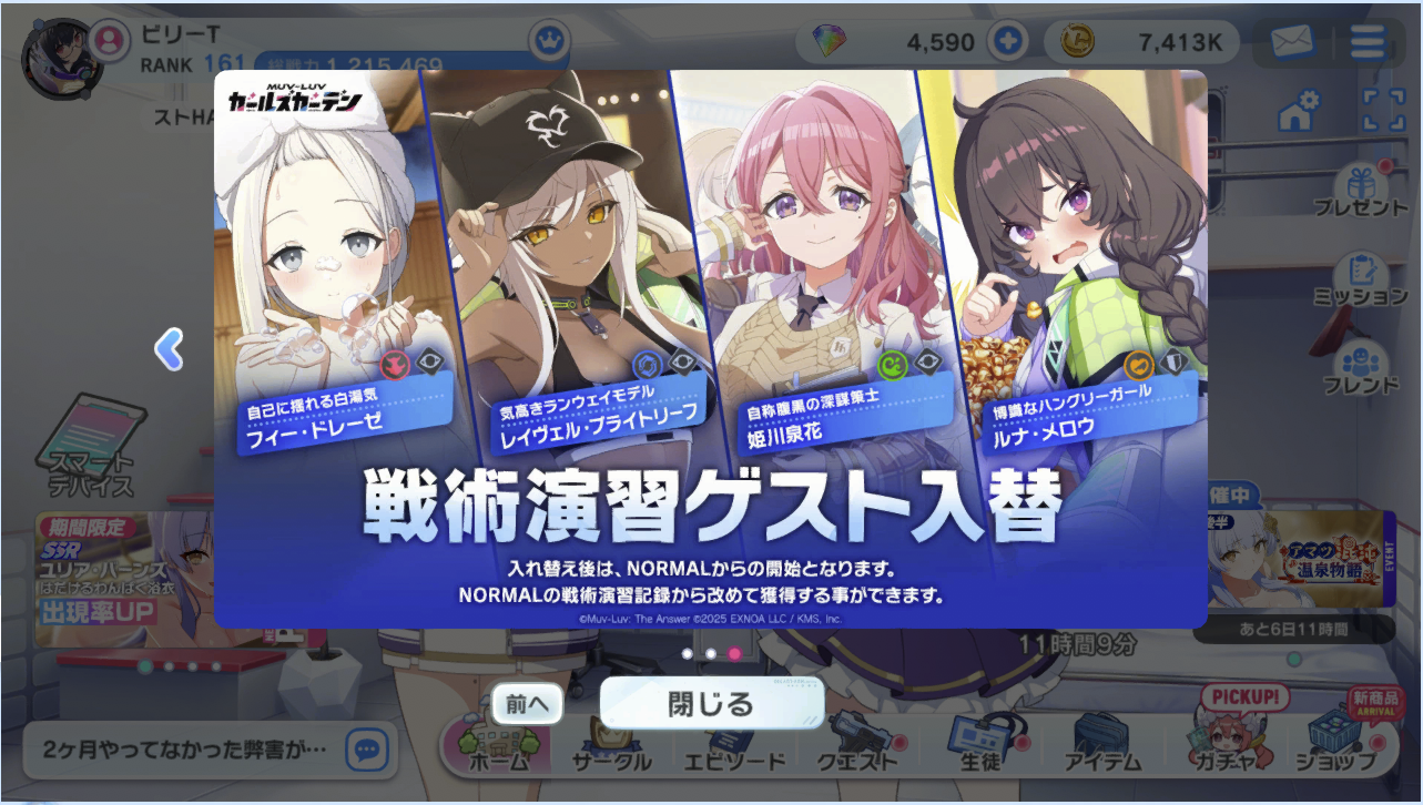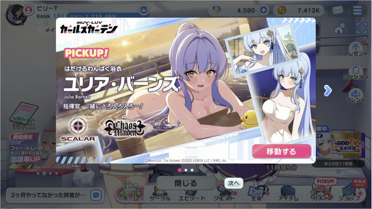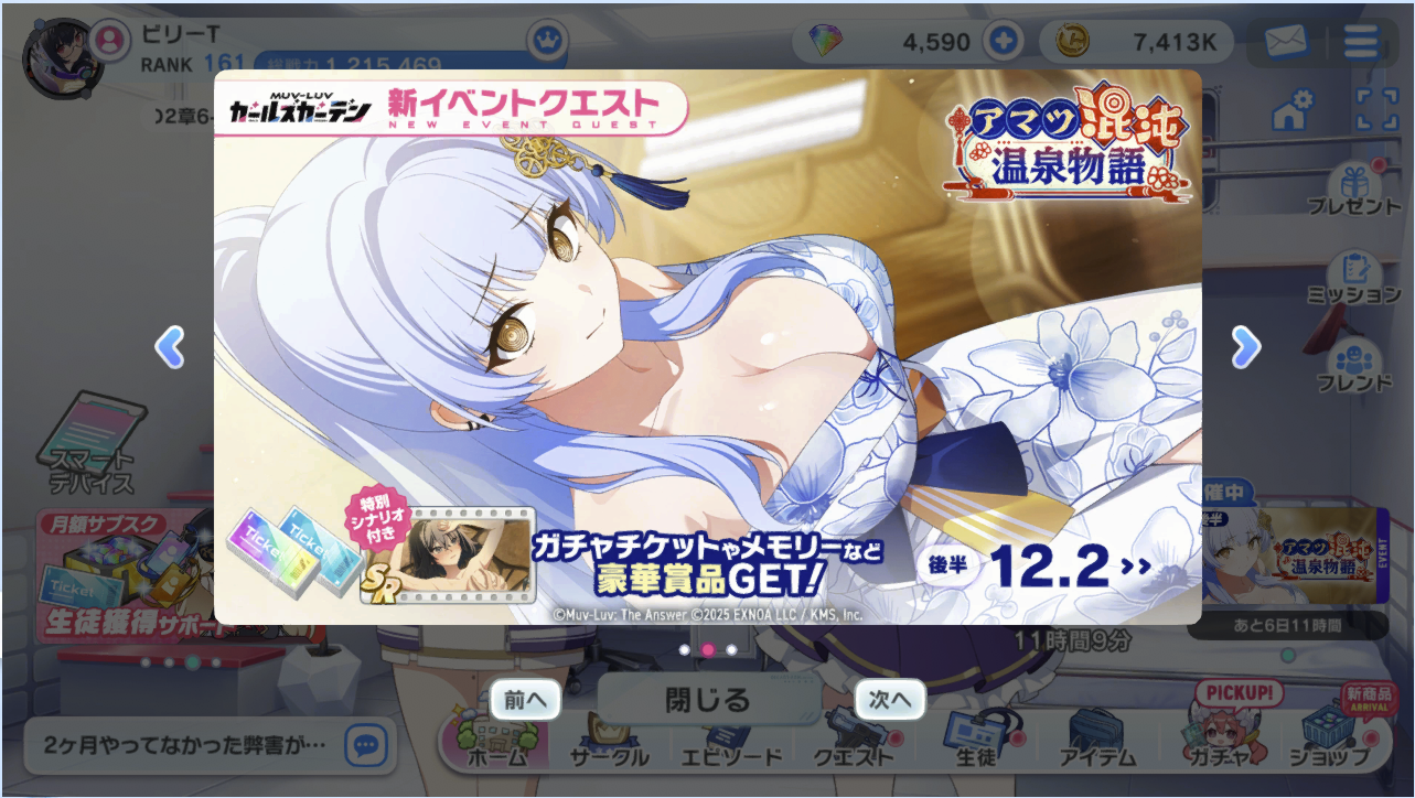 スポンサーリンク マブガル:「アマツ混沌温泉物語」8日目! Muv-Luv DIMENSIONSMGGタイトル20250903 X Facebook はてブ LINE コピー 2025.12.02 学園日誌 今日はメンテでした。 MGGSS20251202-1 17時にメンテが明けて、イベント後半戦だ! MGGSS20251202-2 MGGSS20251202-3 MGGSS20251202-4 この後進めます。 本日は以上! 共有: クリックして X で共有 (新しいウィンドウで開きます) X Facebook で共有するにはクリックしてください (新しいウィンドウで開きます) Facebook