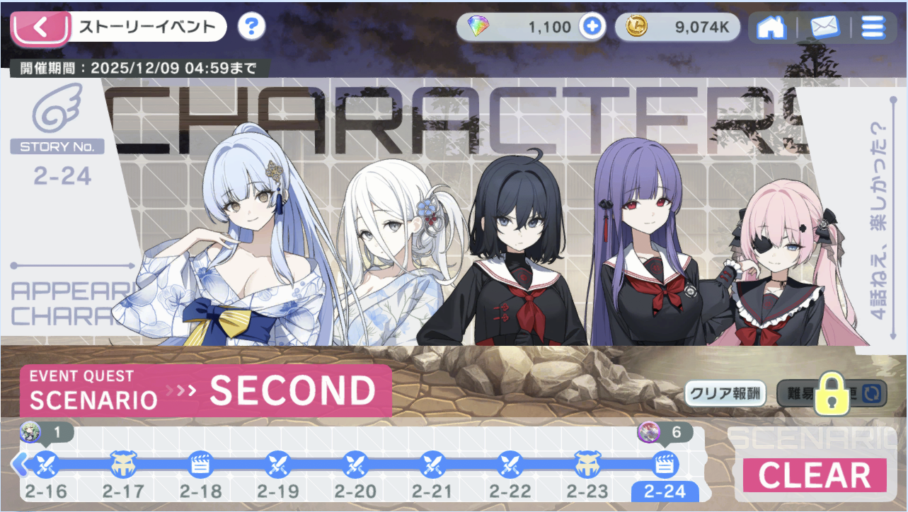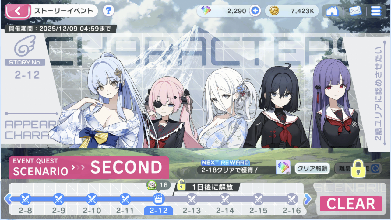 スポンサーリンク マブガル:「アマツ混沌温泉物語」9日目! Muv-Luv Girls GardenMGGタイトル20250903 X Facebook はてブ LINE コピー 2025.12.03 学園日誌 昨日も今日も行けるところまで進めました。 MGGSS20251203-1 MGGSS20251203-2 MGGSS20251203-3 デイリーは消化。 MGGSS20251203-4 チケットでノエルが来る。 MGGSS20251203-5 PUガチャは当たらない……。 SSR出るだけマシではある。 MGGSS20251203-6 この後もメイズ探索などをやろうと思う。 シナリオは面白かった! ちゃんとキャラの背景が提示されるのは良いですね。 残り期間も楽しみに過ごします。 本日は以上! 共有: クリックして X で共有 (新しいウィンドウで開きます) X Facebook で共有するにはクリックしてください (新しいウィンドウで開きます) Facebook