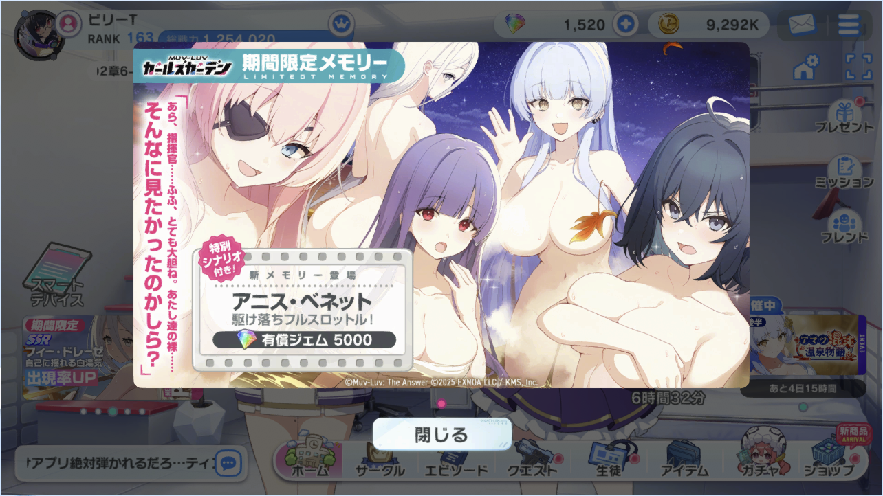 スポンサーリンク マブガル:「アマツ混沌温泉物語」10日目! Muv-Luv Girls GardenMGGタイトル20250903 X Facebook はてブ LINE コピー 2025.12.04 学園日誌 MGGSS20251204-1 メモリーは買えないぞ! 今日も行けるところまで。 MGGSS20251204-2 MGGSS20251204-3 デイリーは消化。 MGGSS20251204-4 明日も進めます。 本日は以上! 共有: クリックして X で共有 (新しいウィンドウで開きます) X Facebook で共有するにはクリックしてください (新しいウィンドウで開きます) Facebook