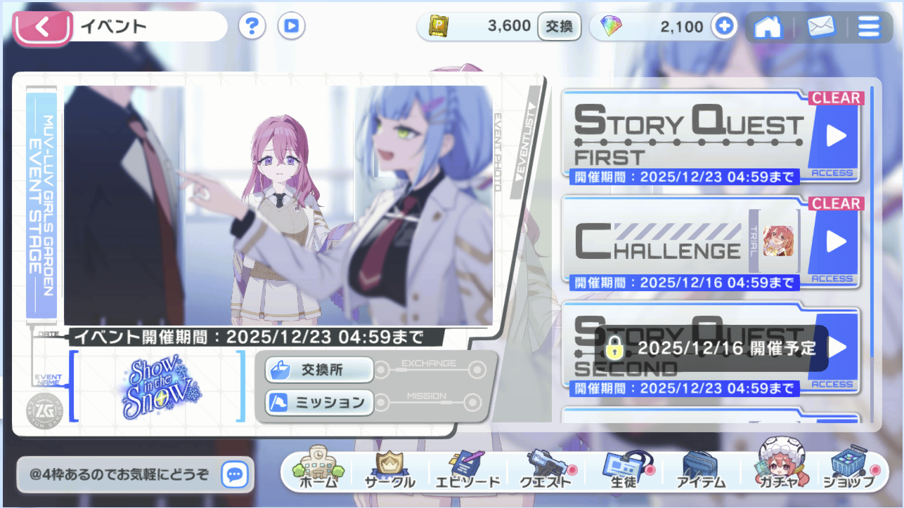 スポンサーリンク マブガル:「Show in the Snow」5日目! Muv-Luv Girls GardenMGGタイトル20250903 X Facebook はてブ LINE コピー 2025.12.13 学園日誌 今日も行けるところまで。 MGGSS20251213-1 MGGSS20251213-2 デイリーも消化。 MGGSS20251213-3 MG対抗戦が来週始まる模様。 MGGSS20251213-4 忙しい……orz。 でも毎日頑張って進める。 本日は以上! 共有: クリックして X で共有 (新しいウィンドウで開きます) X Facebook で共有するにはクリックしてください (新しいウィンドウで開きます) Facebook