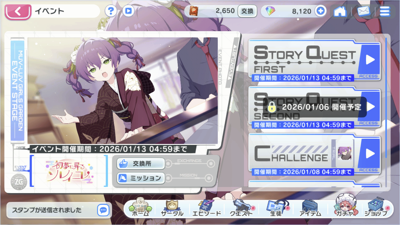 スポンサーリンク マブガル:「初夢に昇るソレイユ」3日目! Muv-Luv Girls GardenMGGタイトル20250903 X Facebook はてブ LINE コピー 2026.01.03 学園日誌 メモリーエピソードを読む。 MGGSS20260103-1 今日もランキング首位だったので、もらったチケットでガチャを回しました。 SSR三枚抜きだ! MGGSS20260103-2 イベントクエストを進めました。 MGGSS20260103-3 MGGSS20260103-4 MGGSS20260103-5 デイリーも消化。 MGGSS20260103-6 またこの後も進めます。 本日は以上! 共有: クリックして X で共有 (新しいウィンドウで開きます) X Facebook で共有するにはクリックしてください (新しいウィンドウで開きます) Facebook