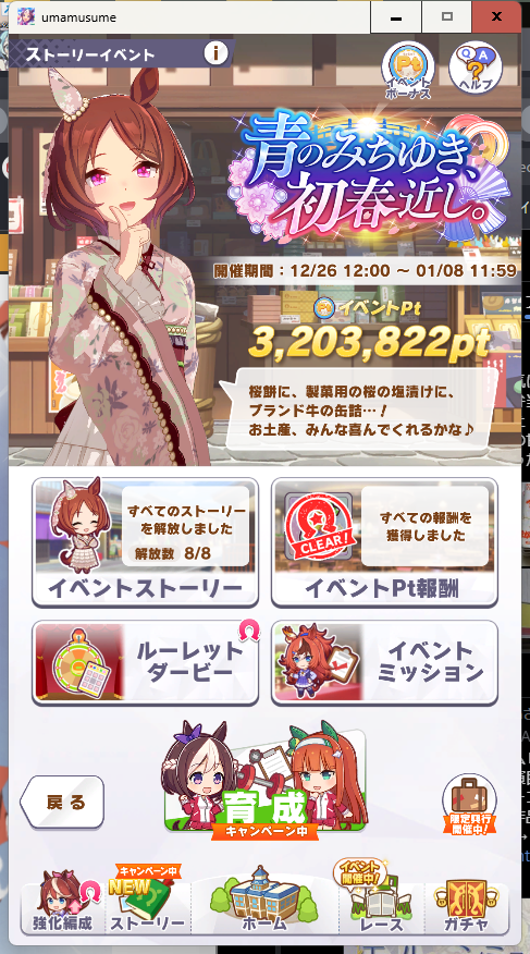 スポンサーリンク ウマ娘:2026年01月イベントそのじゅうに。 ウマ娘ウマ娘タイトル20250224 X Facebook はてブ LINE コピー 2026.01.07 トレーナー日誌 今日も育成。 ウマ娘SS20260107-1 ウマ娘SS20260107-2 イベントも明日の12時まで。 今回はかなりポイントを稼げたのでヨシ! また明日も育成します。 本日は以上! 共有: クリックして X で共有 (新しいウィンドウで開きます) X Facebook で共有するにはクリックしてください (新しいウィンドウで開きます) Facebook