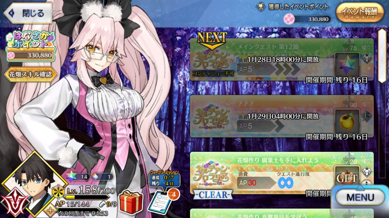 スポンサーリンク FGO:「カルデアン・フロラリア あなたの花が咲く頃に」6日目。 Fate/Grand OrderFGO202601月イベントタイトル X Facebook はてブ LINE コピー 2026.01.28 弊カルデア日誌 やっと追いついた。 FGOSS20260128 あいつが黒幕なんて……。 今夜の更新が楽しみです。 本日は以上! 共有: クリックして X で共有 (新しいウィンドウで開きます) X Facebook で共有するにはクリックしてください (新しいウィンドウで開きます) Facebook