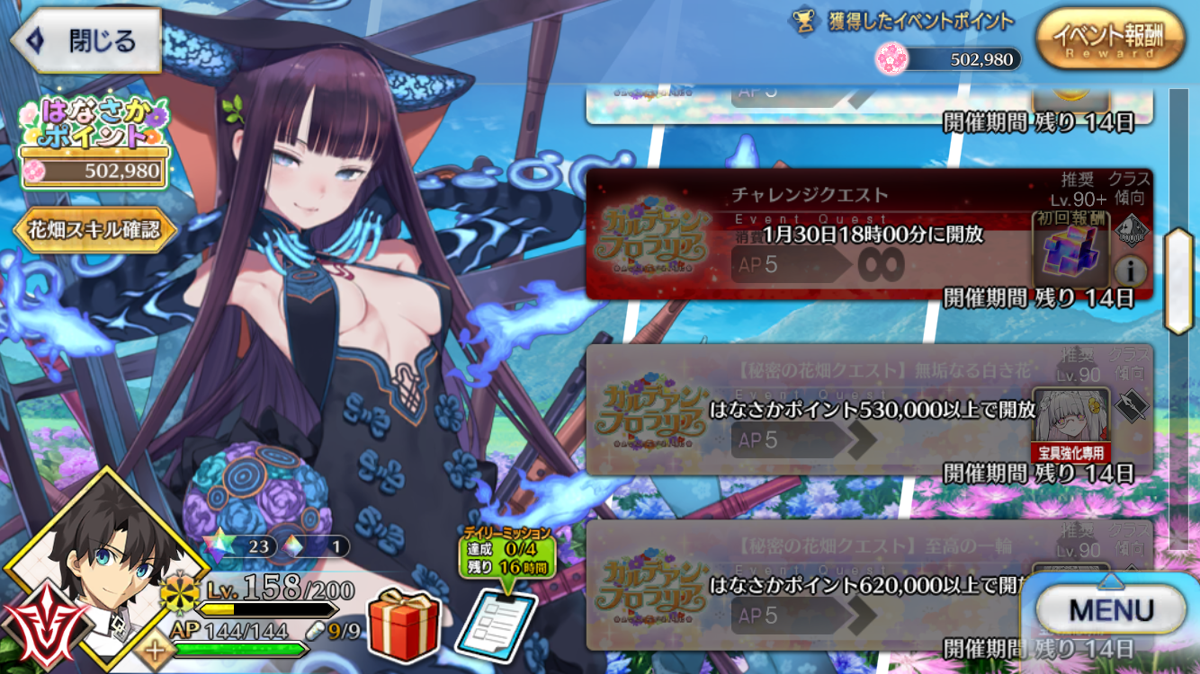 スポンサーリンク FGO:「カルデアン・フロラリア あなたの花が咲く頃に」8日目。 Fate/Grand OrderFGO202601月イベントタイトル X Facebook はてブ LINE コピー 2026.01.30 弊カルデア日誌 メインシナリオを読み終えました。 FGOSS20260130 よくまとまってる話でした。 語るとネタバレになるので、是非君の目で見てくれ! ポイントを稼ぎます。 本日は以上! 共有: クリックして X で共有 (新しいウィンドウで開きます) X Facebook で共有するにはクリックしてください (新しいウィンドウで開きます) Facebook