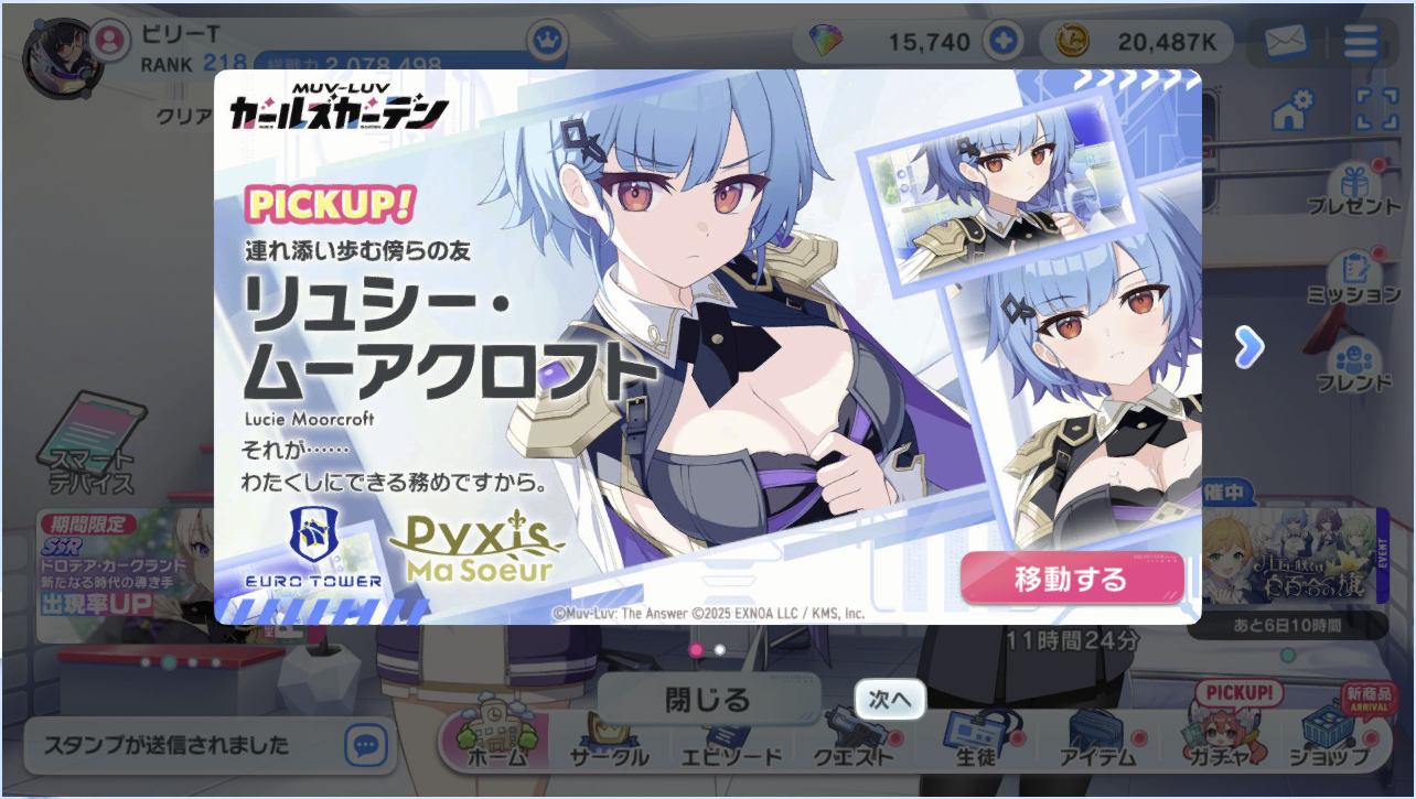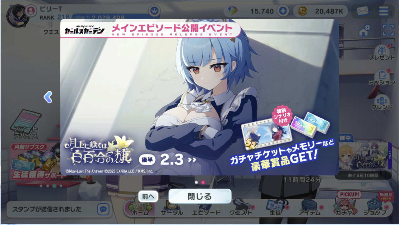 スポンサーリンク マブガル:「月下に咲くは白百合の旗」8日目! Muv-Luv Girls GardenMGGタイトル20250903 X Facebook はてブ LINE コピー 2026.02.03 学泉日誌 今日は17時までメンテでした。 MGGSS20260203-1 無事に17時に明けて、シナリオ追加だ! MGGSS20260203-2 MGGSS20260203-3 ガチャは負けたので、交換だ。 MGGSS20260203-4 シナリオは良く出来てる。 MGGSS20260203-5 MGGSS20260203-6 MGGSS20260203-7 褒めるしかない。具体的にはネタバレになるので言えないが。 また引きが凄い。丁度初期メンバーが一周したので、新展開と思われる。 楽しみだ。 本日は以上! 共有: クリックして X で共有 (新しいウィンドウで開きます) X Facebook で共有するにはクリックしてください (新しいウィンドウで開きます) Facebook
