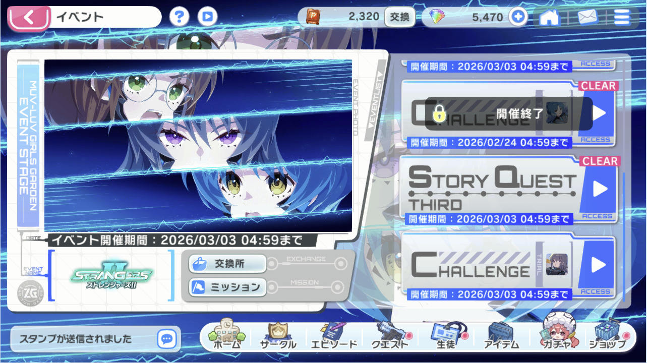 スポンサーリンク マブガル:「STRENGERS II」18日目! Muv-Luv Girls GardenMGGタイトル20250903 X Facebook はてブ LINE コピー 2026.02.27 学園日誌 今日も更新分を。 MGGSS20260227-1 MGGSS20260227-2 デイリーも消化。 MGGSS20260227-3 この後20時から生放送ですよ。楽しみ。 本日は以上! 共有: X で共有 (新しいウィンドウで開きます) X Facebook で共有 (新しいウィンドウで開きます) Facebook