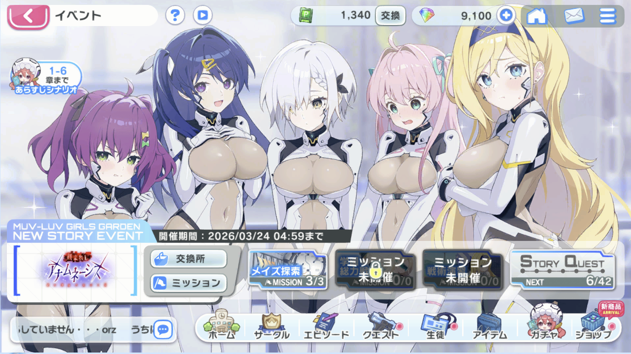 スポンサーリンク マブガル:「刻まれしアナムネーシス」初日! Muv-Luv Girls GardenMGGタイトル20250903 X Facebook はてブ LINE コピー 2026.03.03 学園日誌 今日はメンテですよ。 MGGSS20260303-1 ハーフアニバーサリー万歳! MGGSS20260303-2 早速ガチャを回す。 大勝利! MGGSS20260303-3 MGGSS20260303-4 早速シナリオを行けるところまで。 MGGSS20260303-5 MGGSS20260303-6 MGGSS20260303-7 デイリーも消化。 MGGSS20260303-8 シナリオどうなる。楽しみです。 本日は以上! 共有: X で共有 (新しいウィンドウで開きます) X Facebook で共有 (新しいウィンドウで開きます) Facebook